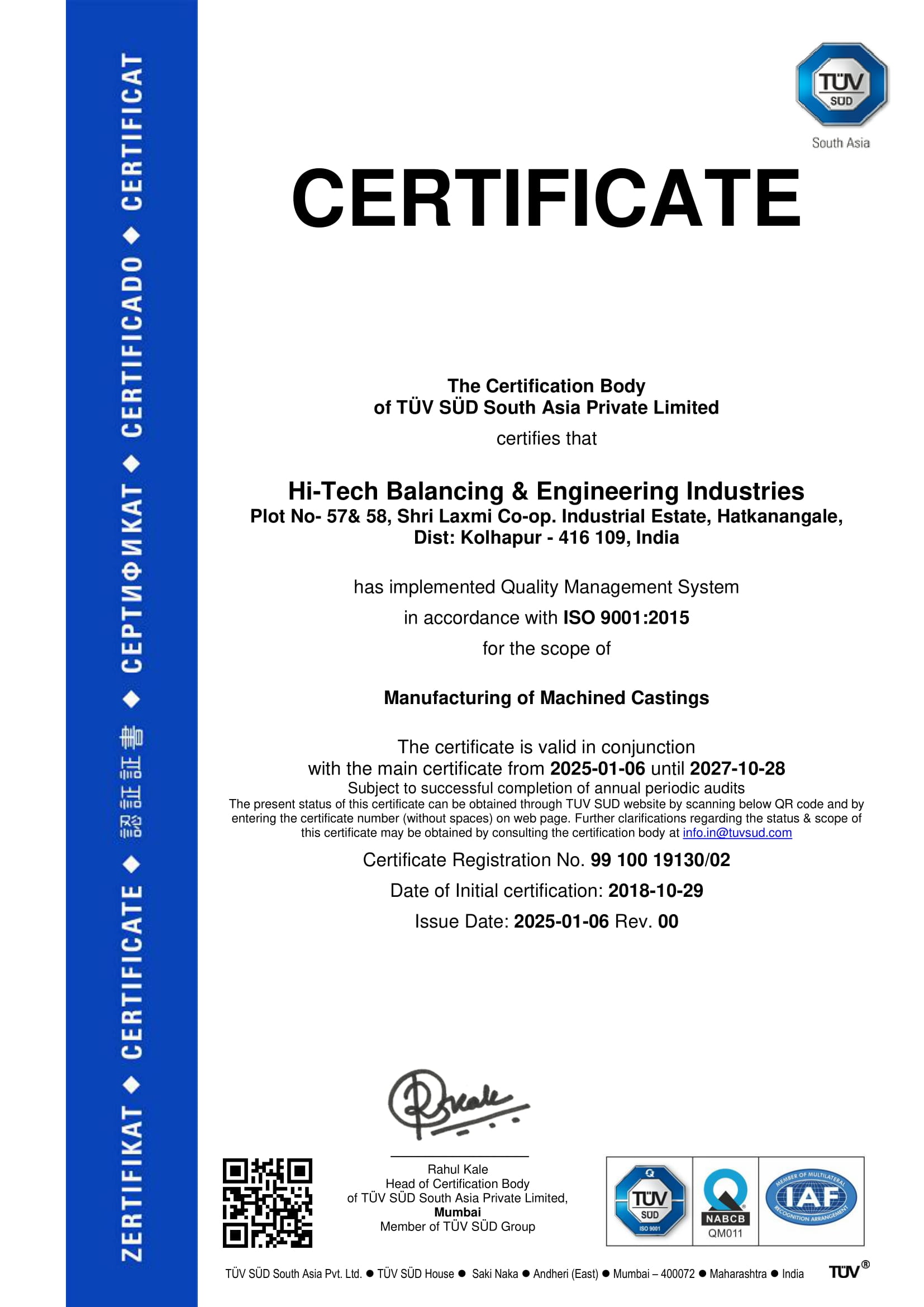 Certification Quality Certification Certified for Excellence, Trusted Worldwide Hi-Tech Group India OUR ACHIEVEMENTS 1. BEST SUPPLIER AWARD -2019 FROM JCB 2. COC- BUSINESS APPROVED FOR SKF 1. SLIMA’S LONG TERM INDUSTRIAL ACHIVEVEMENT AWARD 2011-12 2. SLIMA’S APPRICIATION AWARD 2018-19